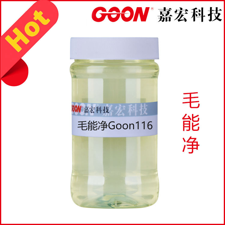 毛能净Goon116是一种特殊高浓毛纺净洗剂,特别是在毛纺行业具有广泛影响,从原毛洗涤剂到最终产品的皂洗,洗缩等,起特殊的爽滑,丰满的手感及白度是其它洗涤剂不能比拟的,特别是原毛、羊绒的洗涤效果更是其它洗涤剂不能代替的。